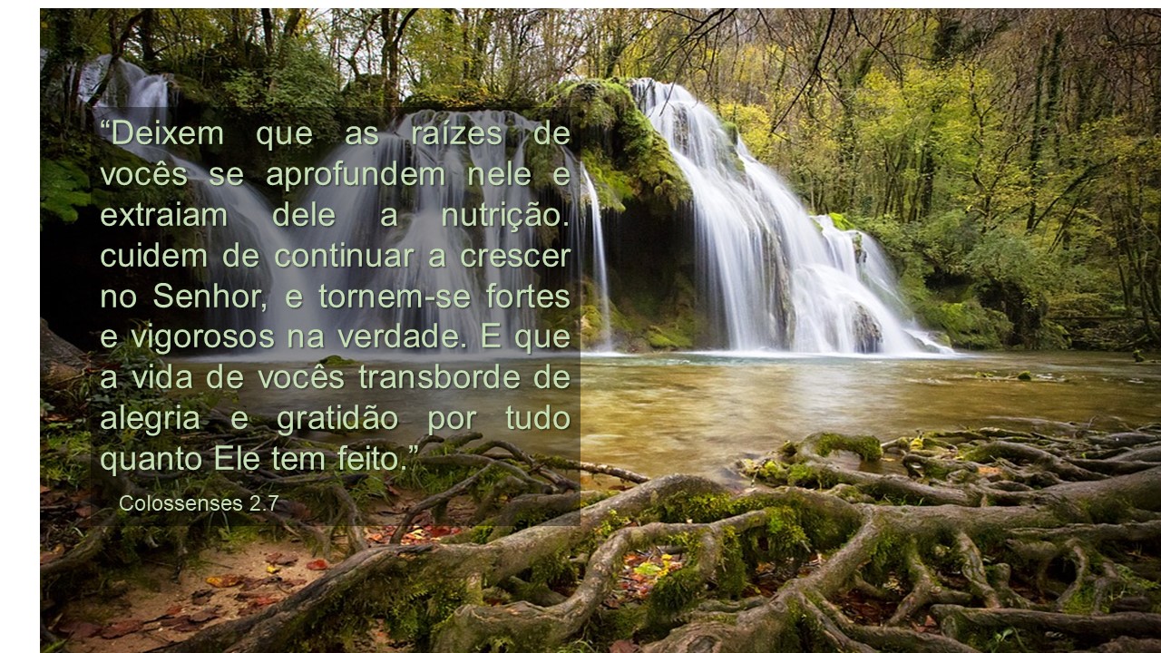 As minhas raízes se aprofundaram na rocha que é Cristo, dele tenho extraído alimento em tempo de escassez, paz na tribulação, confiança diante das incertezas, perdão na ofensa, calma nos desafios, equilíbrio nas turbulências, sabedoria no mundo, perseverança na fé, firmeza e constância na obra do Senhor, certeza de vida eterna, amor a Deus e a sua Palavra.