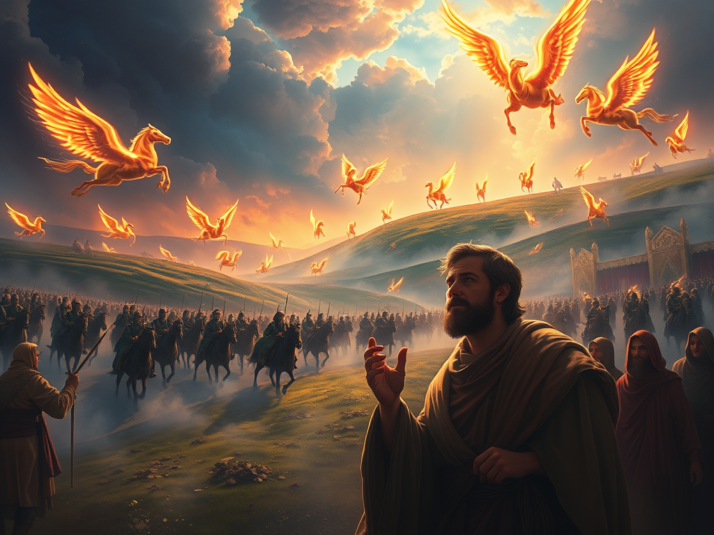 Então, uma noite, o rei da Síria mandou um grande exército, com muitos carros e cavalos, para cercar a cidade de Dotã. Quando (Geazi) o servo do homem de Deus se levantou bem cedo, pela manhã, viu que estavam cercados pelas tropas, carros e cavalos. “Ai, meu senhor! O que faremos agora?”, exclamou o servo a Eliseu. “Não tenha medo”, disse Eliseu. “Aqueles que estão conosco são muito maiores e muito mais fortes do que eles”. Então Eliseu orou: “Ó Senhor! Abra os olhos do meu ajudante para que ele veja!” E Deus abriu os olhos do jovem, e ele viu as colinas cobertas de cavalos e carros de fogo ao redor de Eliseu! Enquanto os soldados sírios avançavam contra a cidade, Eliseu orou ao Senhor: “Faça com que esses homens fiquem cegos!” Deus, o Senhor, respondeu à oração de Eliseu e fez com que os sírios ficassem cegos. II REIS 6.11-18